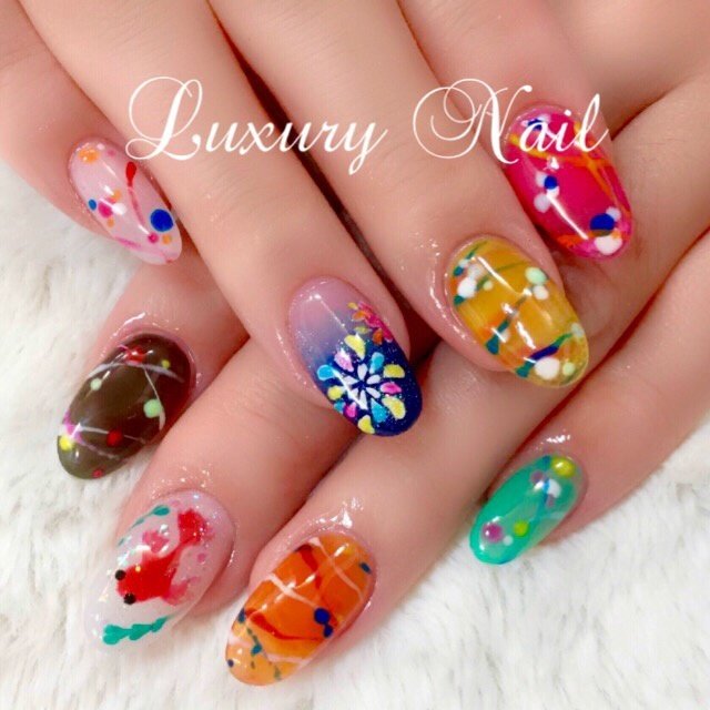 ヨーヨーネイル 花火ネイル グラデーション 浴衣 夏 デート お祭り ネイルチップ ネイルシール Mika Nail 通販 Creema クリーマ ハンドメイド 手作り クラフト作品の販売サイト